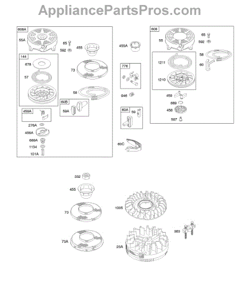Parts for Briggs & Stratton 12F802-2016-E1: Flywheel, Rewind Starter Parts