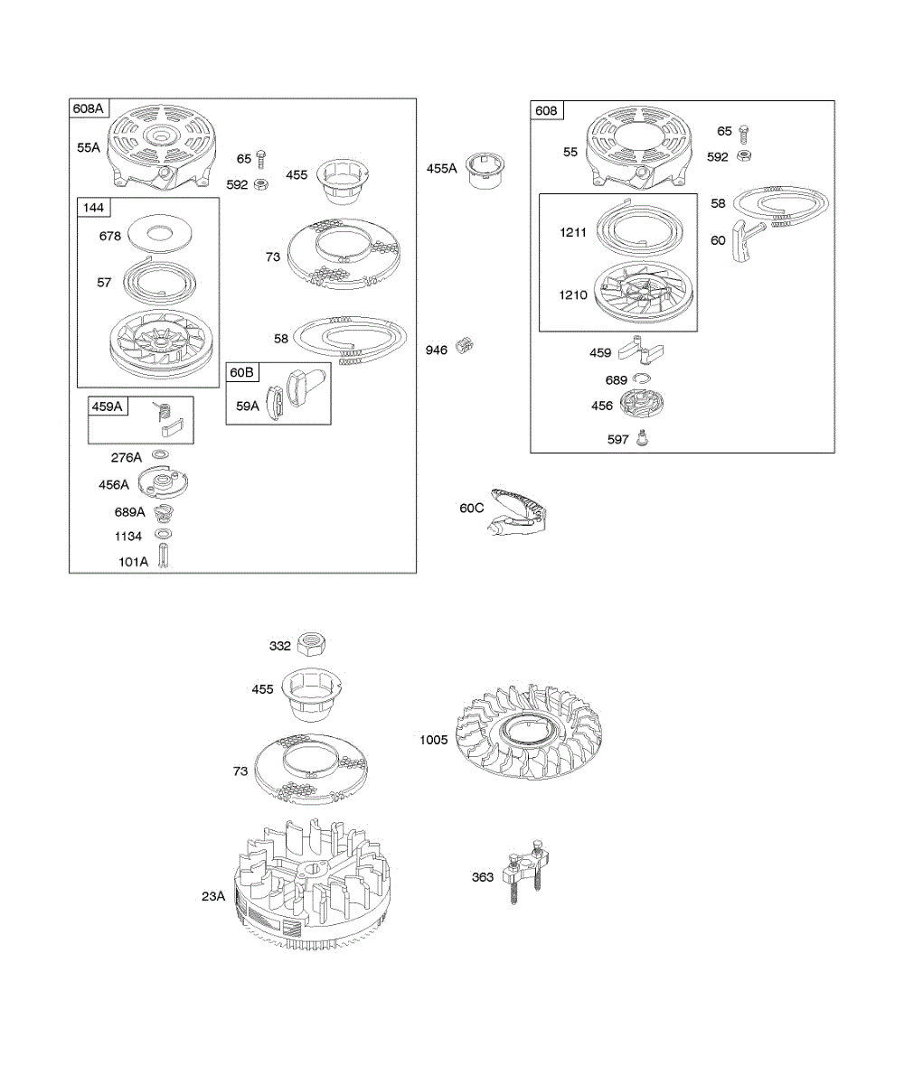 Parts for Briggs & Stratton 12J807-2961-B1: Flywheel, Rewind Starter Parts