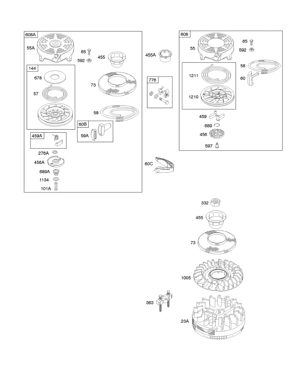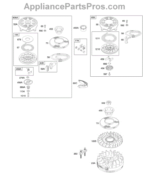 Parts for Briggs & Stratton 12G802-1908-E1: Flywheel, Rewinds Parts