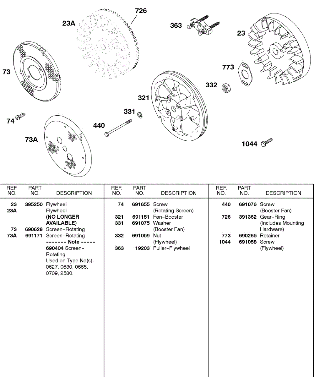 Parts for Briggs & Stratton 243431-0172-99: Flywheel, Rotating Screen Parts