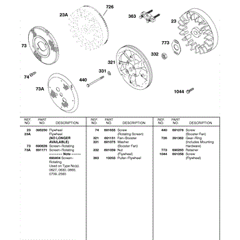 Parts for Briggs & Stratton 243431-0718-99: Flywheel, Rotating Screen Parts