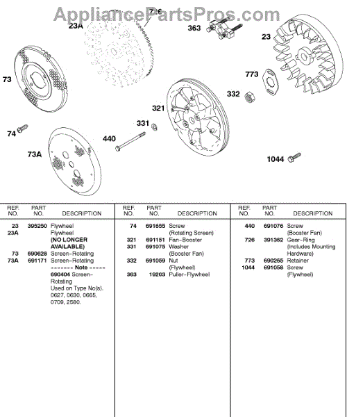 Parts for Briggs & Stratton 243431-0722-99: Flywheel, Rotating Screen Parts