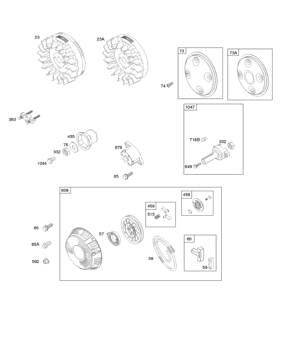 Parts for Briggs & Stratton 295447-0116-E9: Flywheel, Rotating Screen, Stub Shaft, Rewind Starter Parts
