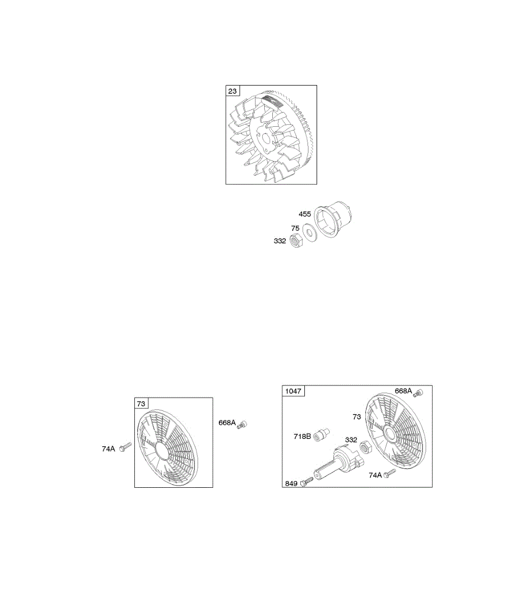 Parts for Briggs & Stratton 304447-0322-E1: Flywheel, Rotating Screen, Stub Shaft Parts