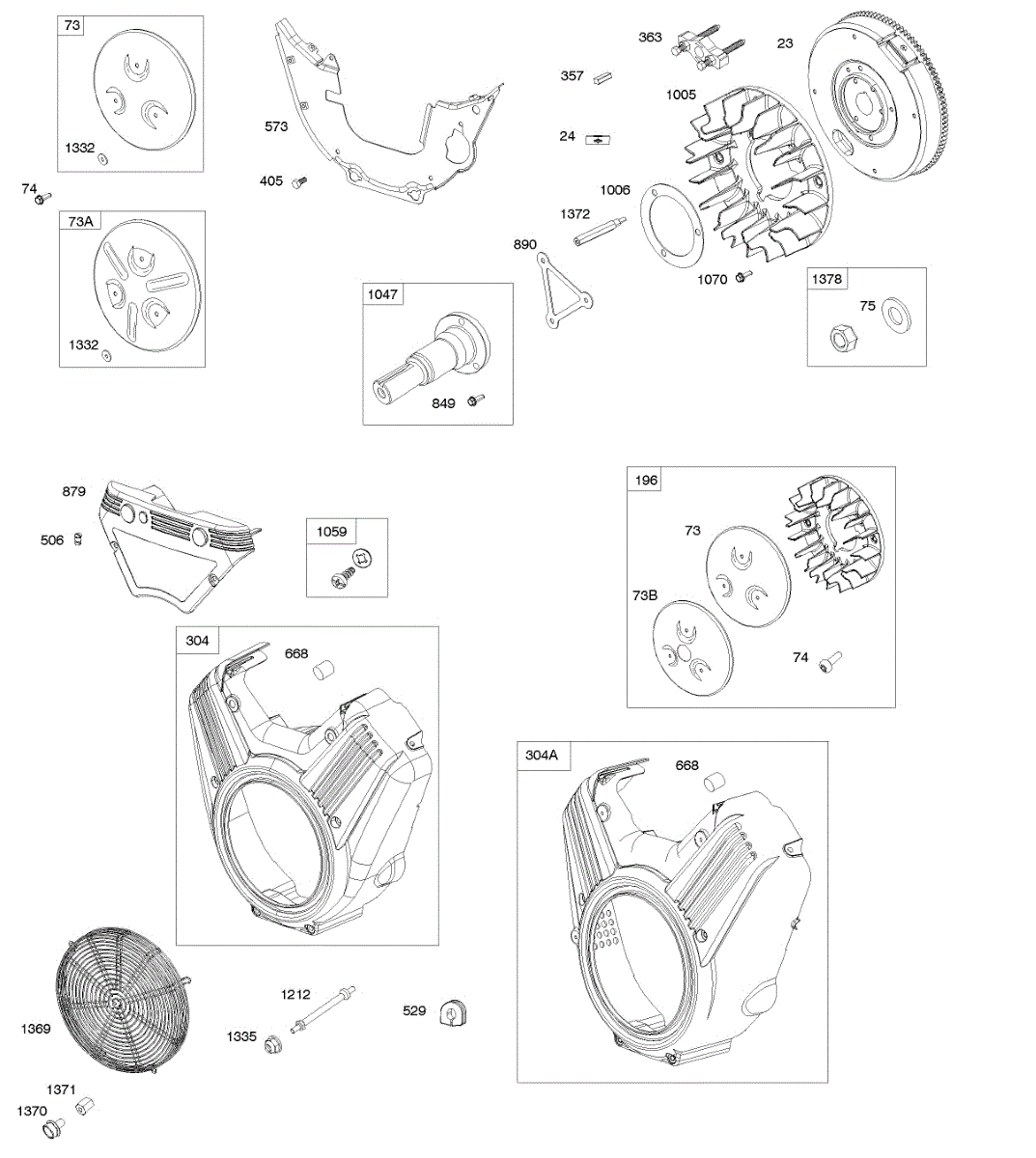 Parts for Briggs & Stratton 541477-1125-B1: Flywheel, Rotating Screens, Blower Housings Parts