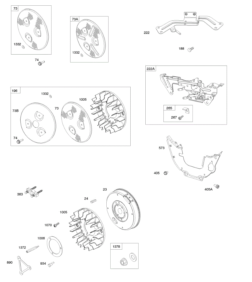 Parts for Briggs & Stratton 543277-0112-01: Flywheel, Rotating Screens, Control Brackets Parts