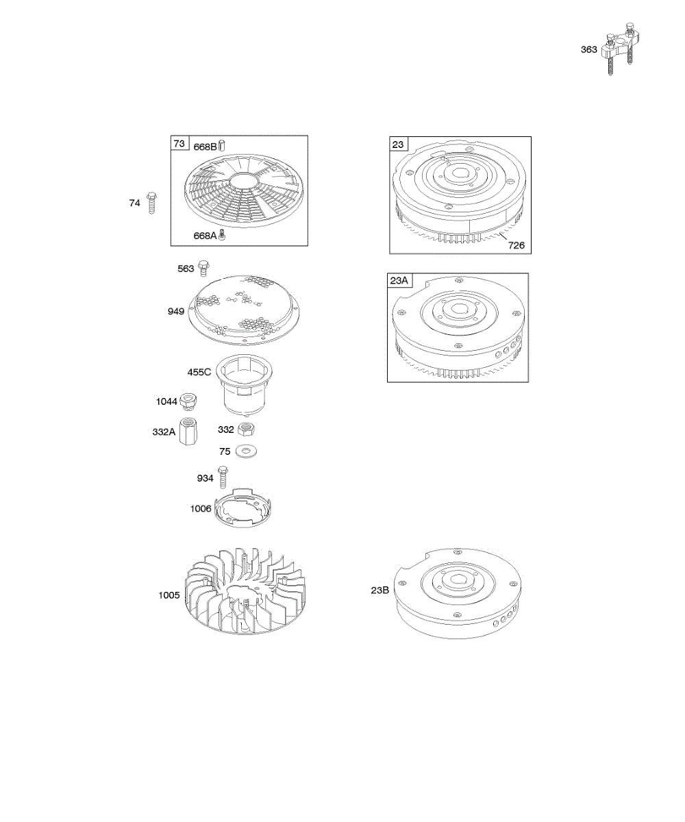Parts for Briggs & Stratton 350777-0117-01: Flywheels, Fans, Rotating Screens Parts