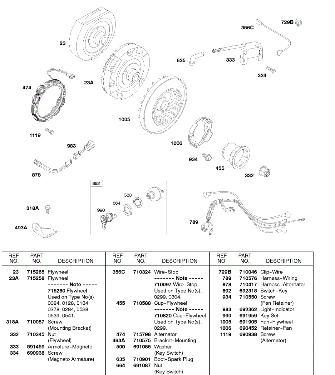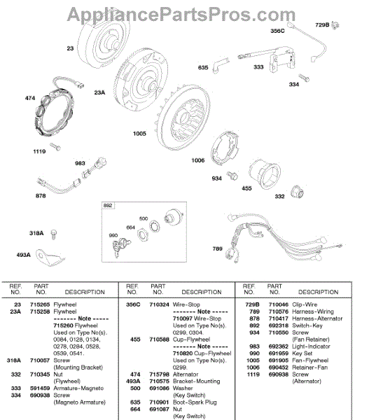 Parts for Briggs & Stratton 245437-0280-E2: Flywheels, Harness, Alternator, Magnetor Armature Parts