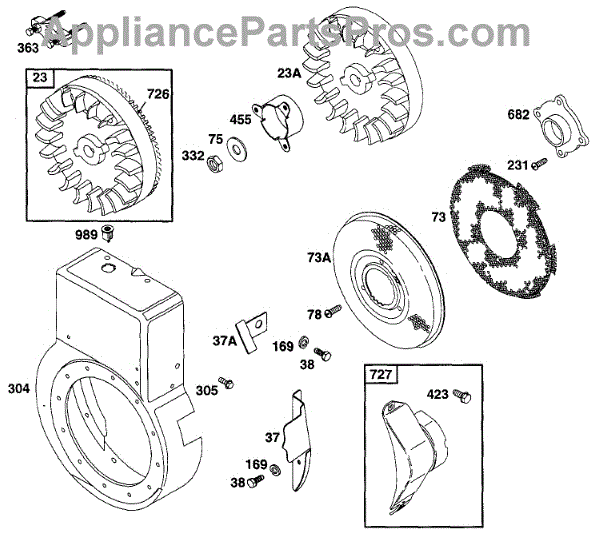 Parts for Briggs & Stratton 222413-0658-01: Flywhells, Blowerhsg, Screen Parts