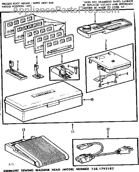 Parts for Kenmore 158.1792182 (1581792182, 158 1792182): Foot Control And Templates Parts