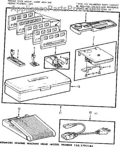 Parts for Kenmore 158.1792183 (1581792183, 158 1792183): Foot Control And Templates Parts