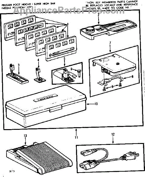 Parts for Kenmore 158.1792184 (1581792184, 158 1792184): Foot Control And Templates Parts