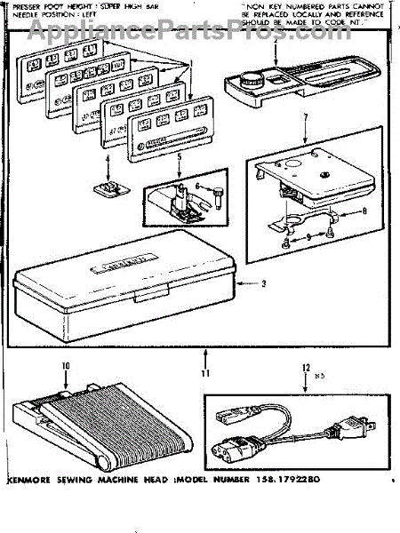 Parts for Kenmore 158.1792280 (1581792280, 158 1792280): Foot Control And Templates Parts
