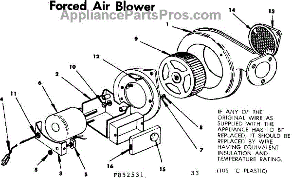 Parts for Kenmore 155.852531 (155852531, 155 852531): Forced Air Blower Parts