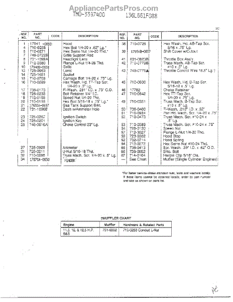 Parts for Mtd 3397400: Form No: 770-96-3D Page 2 Parts