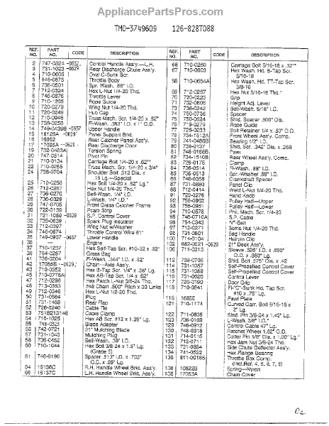 Parts for Mtd 126-828T088: Form No. 770-96-2C Page 2 Parts