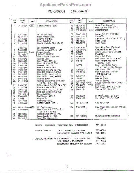 Parts for Mtd 116-504A088: Form No. 770-96-1B Page 2 Parts