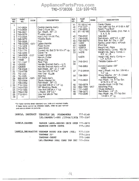 Parts for Mtd 3708006: Form No. 770-96-1A Page 2 Parts