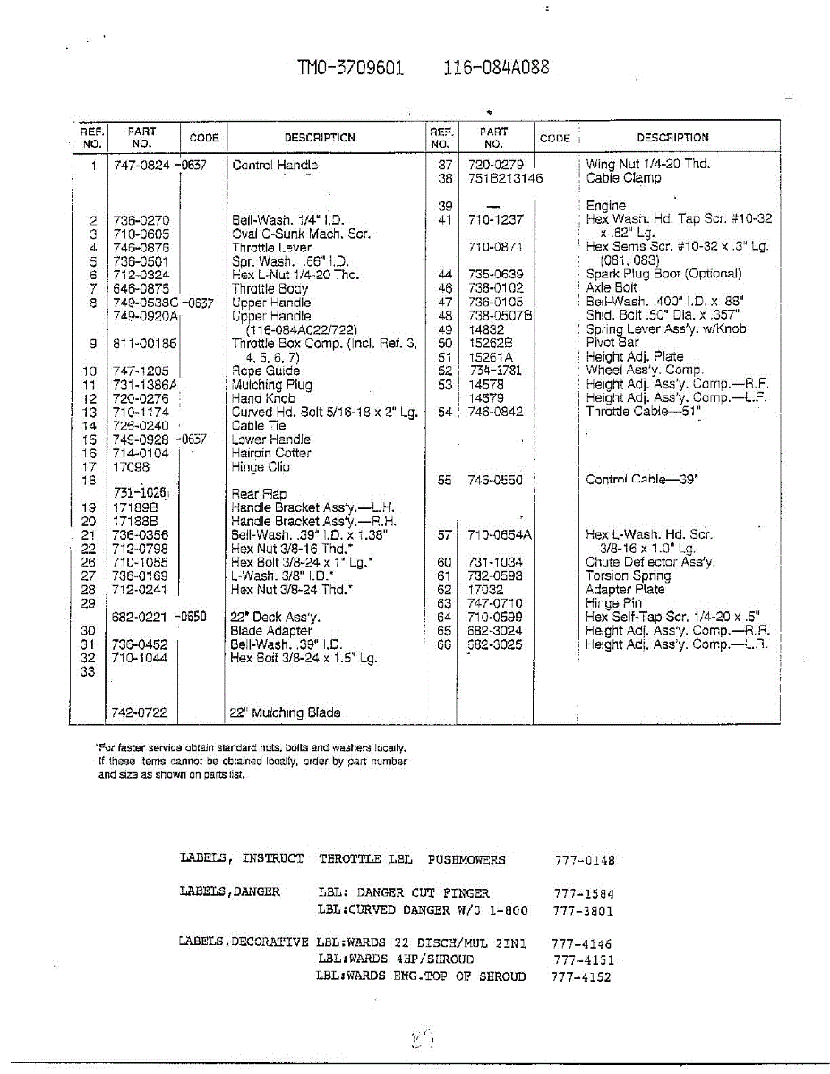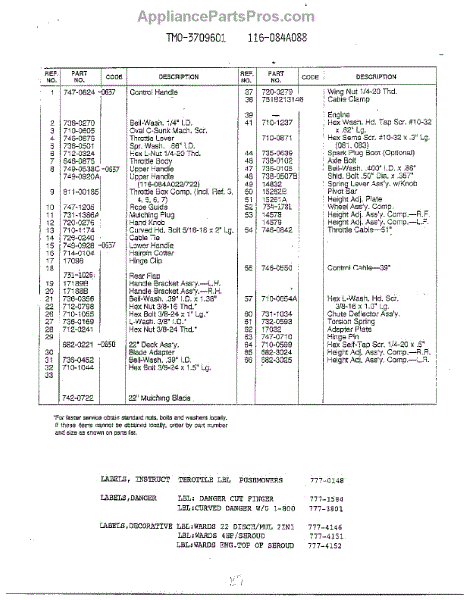 Parts for Mtd 3709601: Form No. 770-96-1A Page 2 Parts