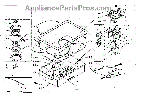 Parts for Kenmore 154.40485 (15440485, 154 40485): Four Surface Unit Drop-In Parts