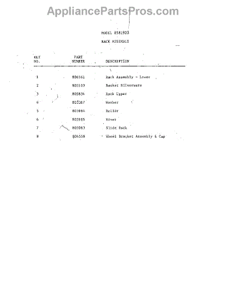 Parts for Whirlpool 8591W20: 27 - Frame Parts