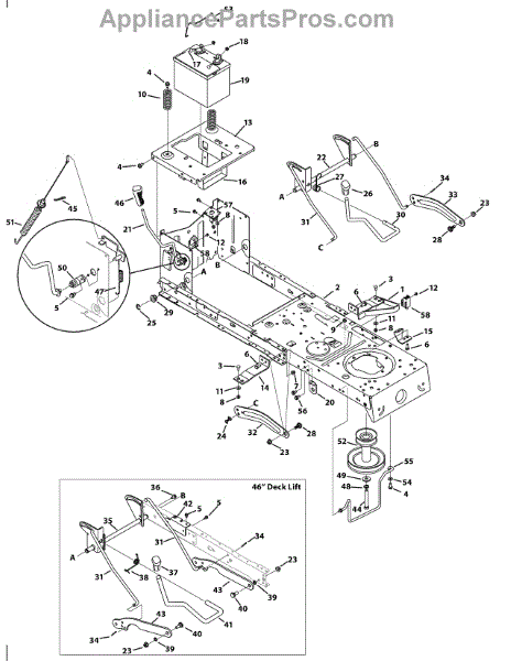 This replacement part is a shaft assembly lift. It attaches to the lift link arms. This allows the deck of the machine to be raised or lowered according to the desired settings. If the part has become damaged from impact or because of general wear and tear and can no longer adjust the deck of the lawn mower, it should be replaced. Be sure the engine is in the stationary position and is powered down before attempting to replace this part.This is a genuine OEM replacement part manufactured by MTD. This part is sold individually.