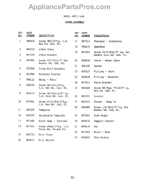Parts for Roper 8501L40: 23 - Frame Assembly Parts