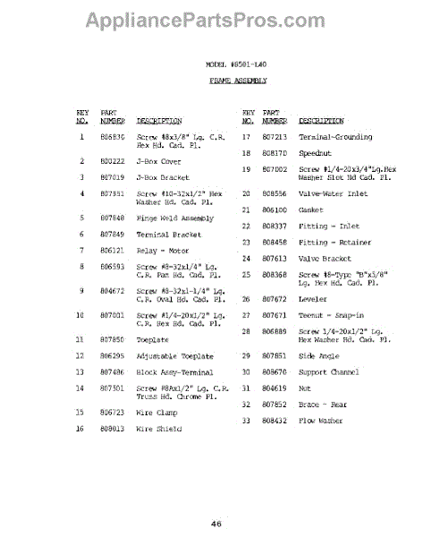 Parts for Roper 8581L40: 47 - Frame Assembly Parts