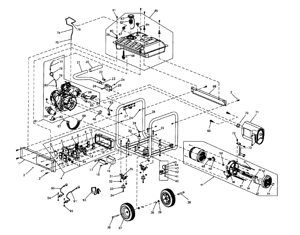 Parts for Generac GP6500E-5941-3: Frame Assy Parts
