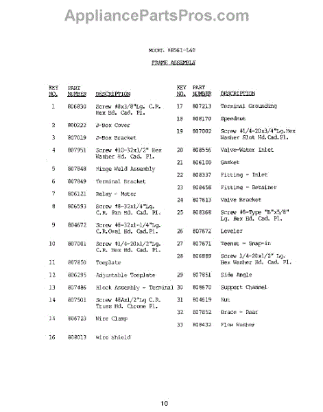 Parts for Roper 8571L40: 11 - Frame Assembly Parts