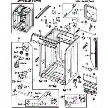 The Washer Back Cover Assembly is essential for maintaining the integrity and appearance of your washer. This genuine OEM part ensures a precise fit with your Samsung washer, restoring its original functionality. Crafted from durable materials, the cover protects internal components from dust and debris, enhancing the longevity of your appliance. Easy to install, this back cover assembly replaces any cracked, missing, or damaged parts, allowing you to perform repairs without the need for professional assistance. The Washer Back Cover Assembly not only safeguards your washer's inner workings but also contributes to a cleaner and more efficient operation. By choosing this genuine OEM part, you ensure compatibility and reliability, providing peace of mind and optimal performance for your Samsung washer. Whether you're addressing minor damages or restoring your washer's appearance, the Washer Back Cover Assembly is a dependable solution for maintaining your appliance's quality and functionality.