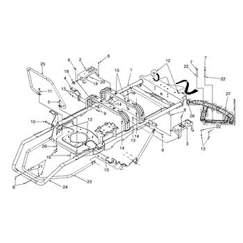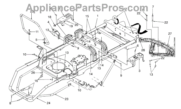 Metal hex bolt screw for lawn tractors and garden equipment. Replace worn, stripped, or missing fasteners in various assembly locations across the machine.