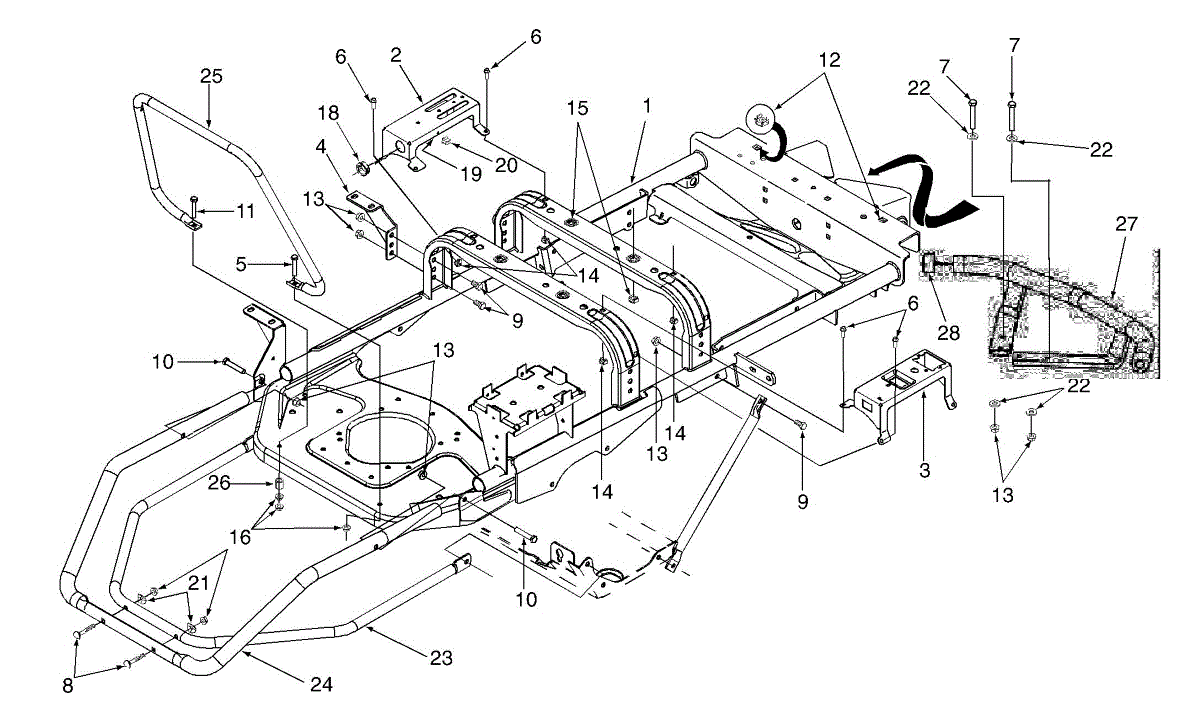 Hex lock nut secures bolted joints on outdoor lawn equipment. Replace if threads are stripped, nut is missing, or won't hold proper tension.