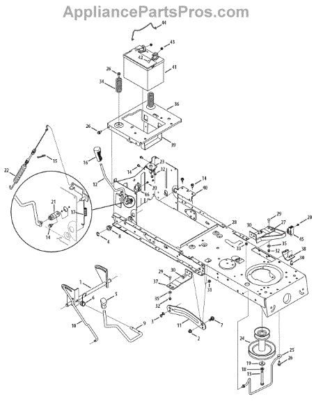 This replacement part is a shaft assembly lift. It attaches to the lift link arms. This allows the deck of the machine to be raised or lowered according to the desired settings. If the part has become damaged from impact or because of general wear and tear and can no longer adjust the deck of the lawn mower, it should be replaced. Be sure the engine is in the stationary position and is powered down before attempting to replace this part.This is a genuine OEM replacement part manufactured by MTD. This part is sold individually.