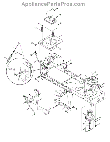 This replacement part is a shaft assembly lift. It attaches to the lift link arms. This allows the deck of the machine to be raised or lowered according to the desired settings. If the part has become damaged from impact or because of general wear and tear and can no longer adjust the deck of the lawn mower, it should be replaced. Be sure the engine is in the stationary position and is powered down before attempting to replace this part.This is a genuine OEM replacement part manufactured by MTD. This part is sold individually.