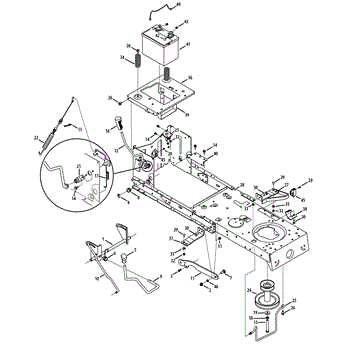 This lawn mower battery brace is compatible with Craftsman, MTD, Kmart, Troy-Bilt, and Yard-Man brands. The battery brace holds the battery in place creating a sturdy surface for the battery terminal to connect to the mower. Without a battery brace, the battery would be able to b around creating an unstable environment for the battery terminal connections, and could cause worse things like a battery leak or a fire. The more vibration the battery is exposed to the shorter its life will be, and an unsecured battery will void the warranty. If the battery terminals become too corroded, mix 1 cup of water and 1 teaspoon of baking soda until the baking soda is dissolved. Then pour the mixture over the battery terminals to dissolve any corrosion. Batteries are toxic, so when changing a battery out, properly disposing of it is recommended. When installing a new battery, place a small amount of petroleum jelly onto the battery terminals to prevent the battery from developing corrosion. After installing a new battery, make sure to securely mount the battery brace, to ensure the battery has a long life and is secure. This is a genuine OEM part sourced directly from the manufacturer and sold individually.