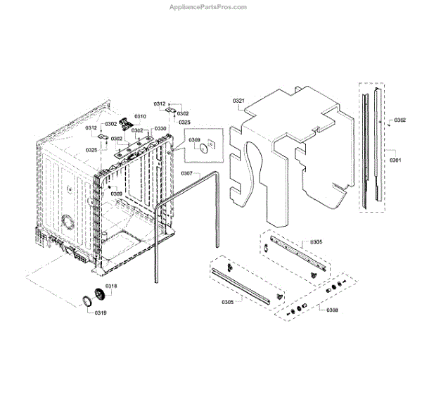 The Side Trim Strip is an OEM replacement part for Bosch dishwashers. It serves as an aesthetic finishing piece that lines both sides of the dishwasher interior tub. Causes of failure include normal wear from daily use, minor impacts during loading/unloading, and breakdown of plastic material over extended years. Symptoms of a worn side trim strip can include: