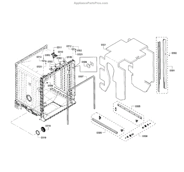 The Side Trim Strip is an OEM replacement part for Bosch dishwashers. It serves as an aesthetic finishing piece that lines both sides of the dishwasher interior tub. Causes of failure include normal wear from daily use, minor impacts during loading/unloading, and breakdown of plastic material over extended years. Symptoms of a worn side trim strip can include: