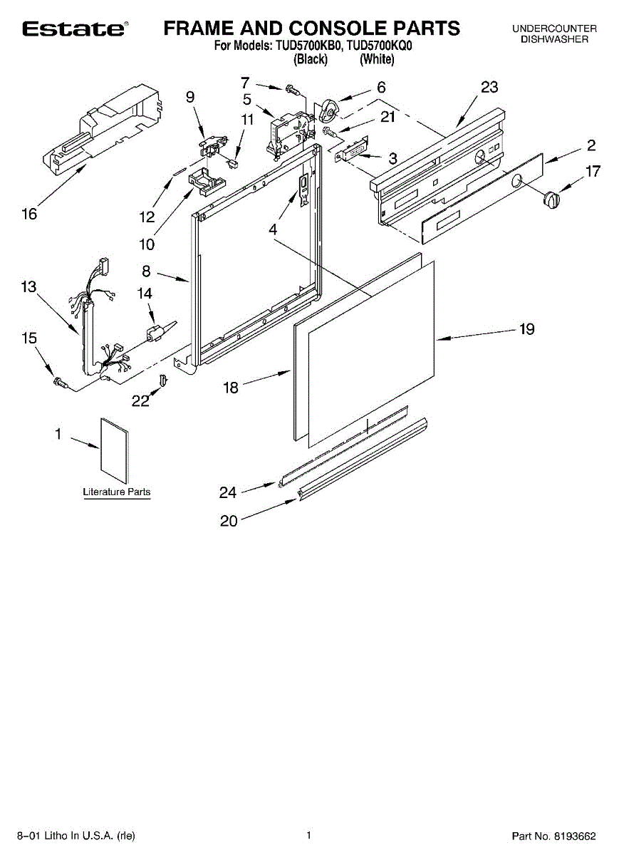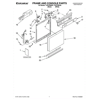 Dishwasher door panel insert. Reversible: white color on one side, black on the other.