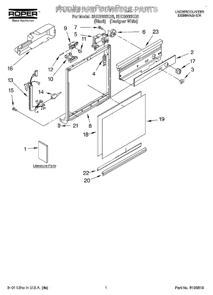 Parts for Roper RUD3000KQ0: 01 - Frame And Console, Literature Parts