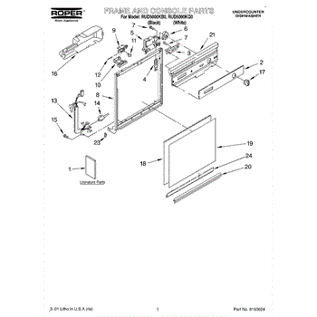 Dishwasher door panel insert. Reversible: white color on one side, black on the other.