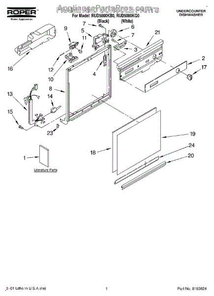 Dishwasher door panel insert. Reversible: white color on one side, black on the other.