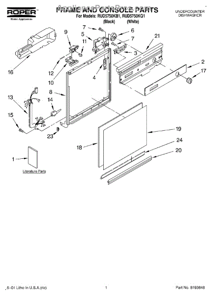 Parts for Roper RUD5750KB1: 01 - Frame And Console, Literature Parts
