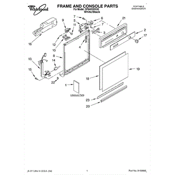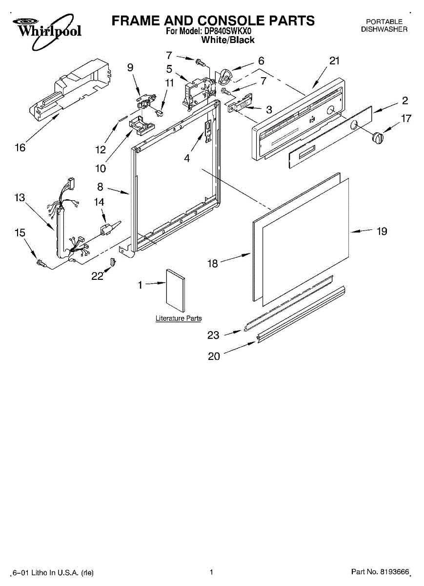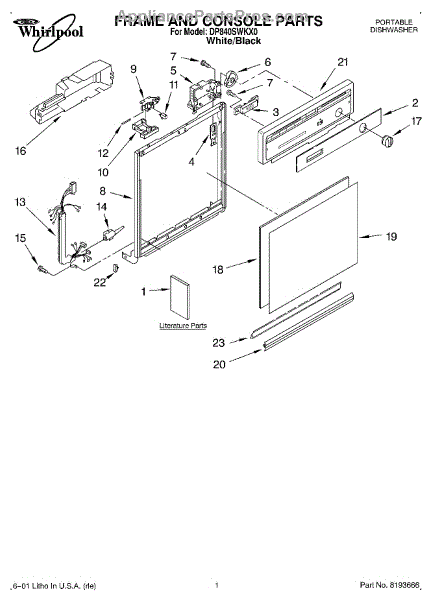 Dishwasher door panel insert. Reversible: white color on one side, black on the other.