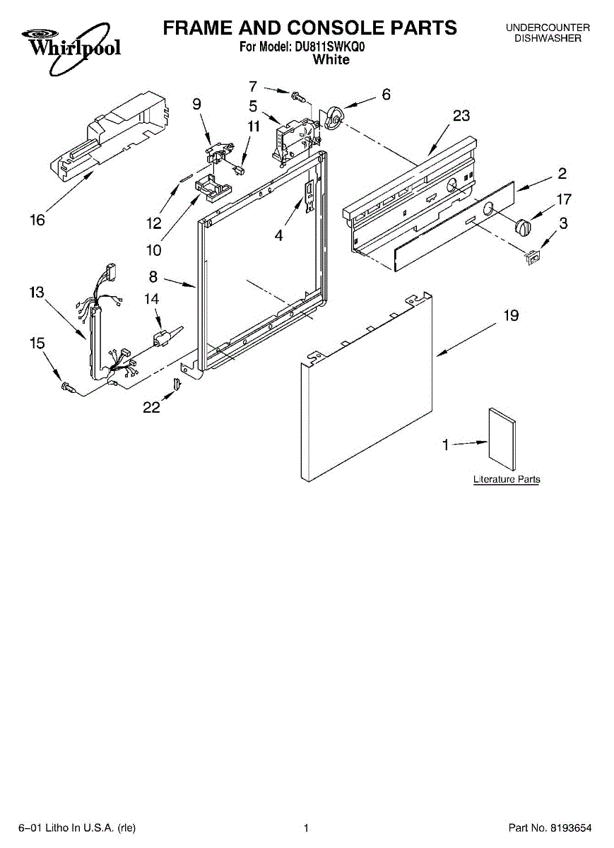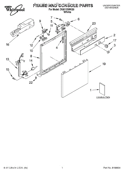 Parts for Whirlpool DU811SWKQ0: 01 - Frame & Console, Literature Parts