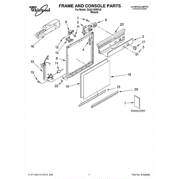 Dishwasher door panel insert. Reversible: white color on one side, black on the other.