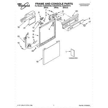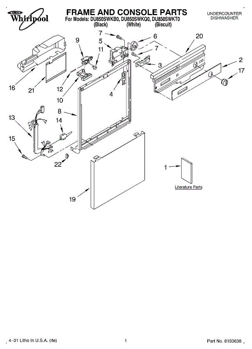 Parts for Whirlpool DU850SWKQ0: 01 - Frame And Console, Literature Parts