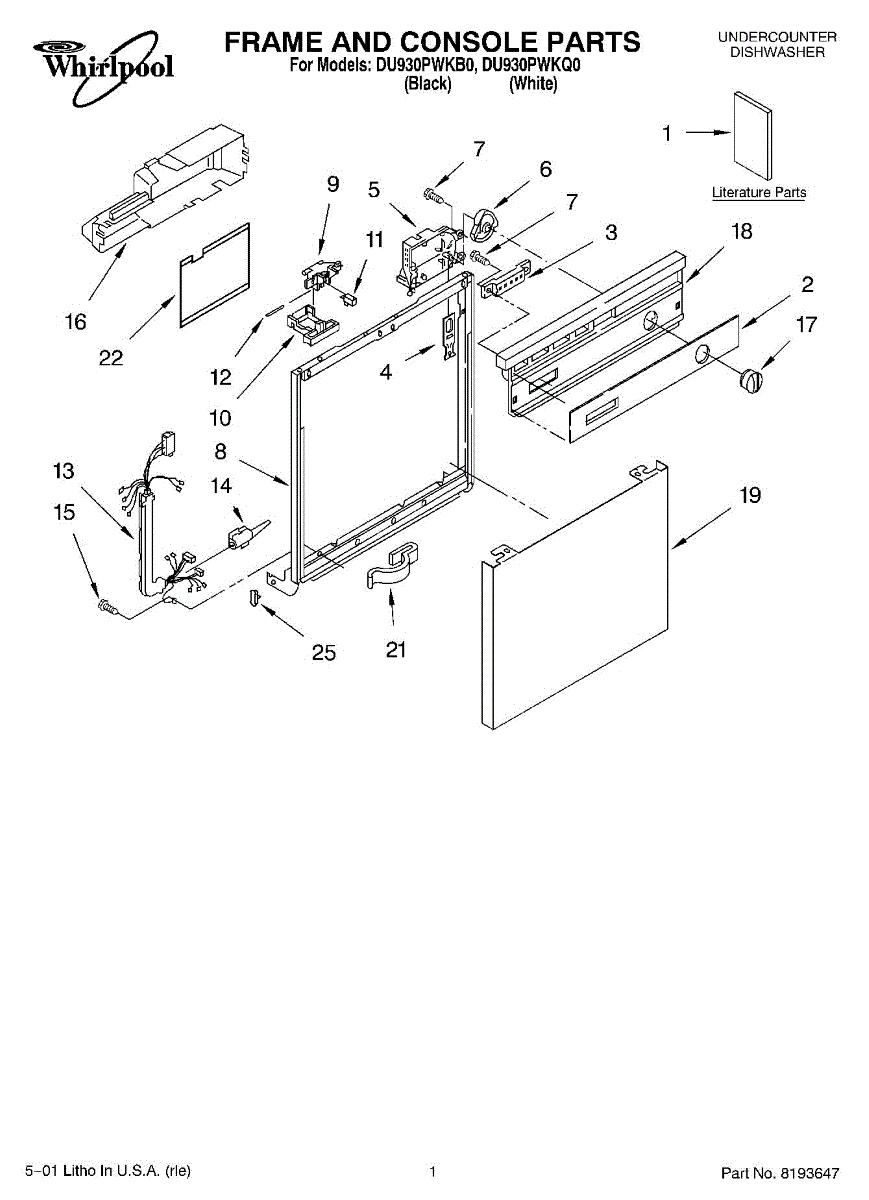The Latch Switch Kit, an OEM Replacement Part is designed to ensure the safe operation of your Whirlpool dishwasher. The kit includes two microswitches and a wiring harness. It prevents the appliance from running when the door is open. If defective, the door switch may prevent the dishwasher from operating even when the door is closed.