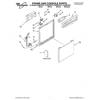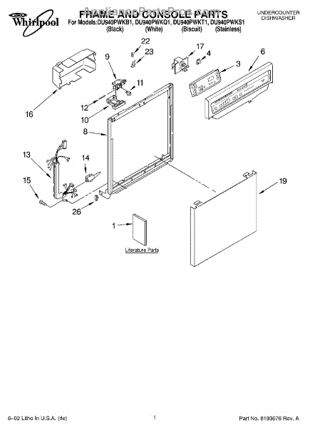 Parts for Whirlpool DU940PWKT1: 01 - Frame And Console, Literature Parts
