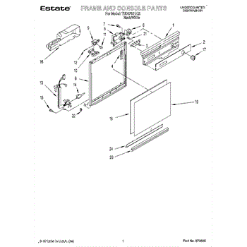 Dishwasher door panel insert. Reversible: white color on one side, black on the other.